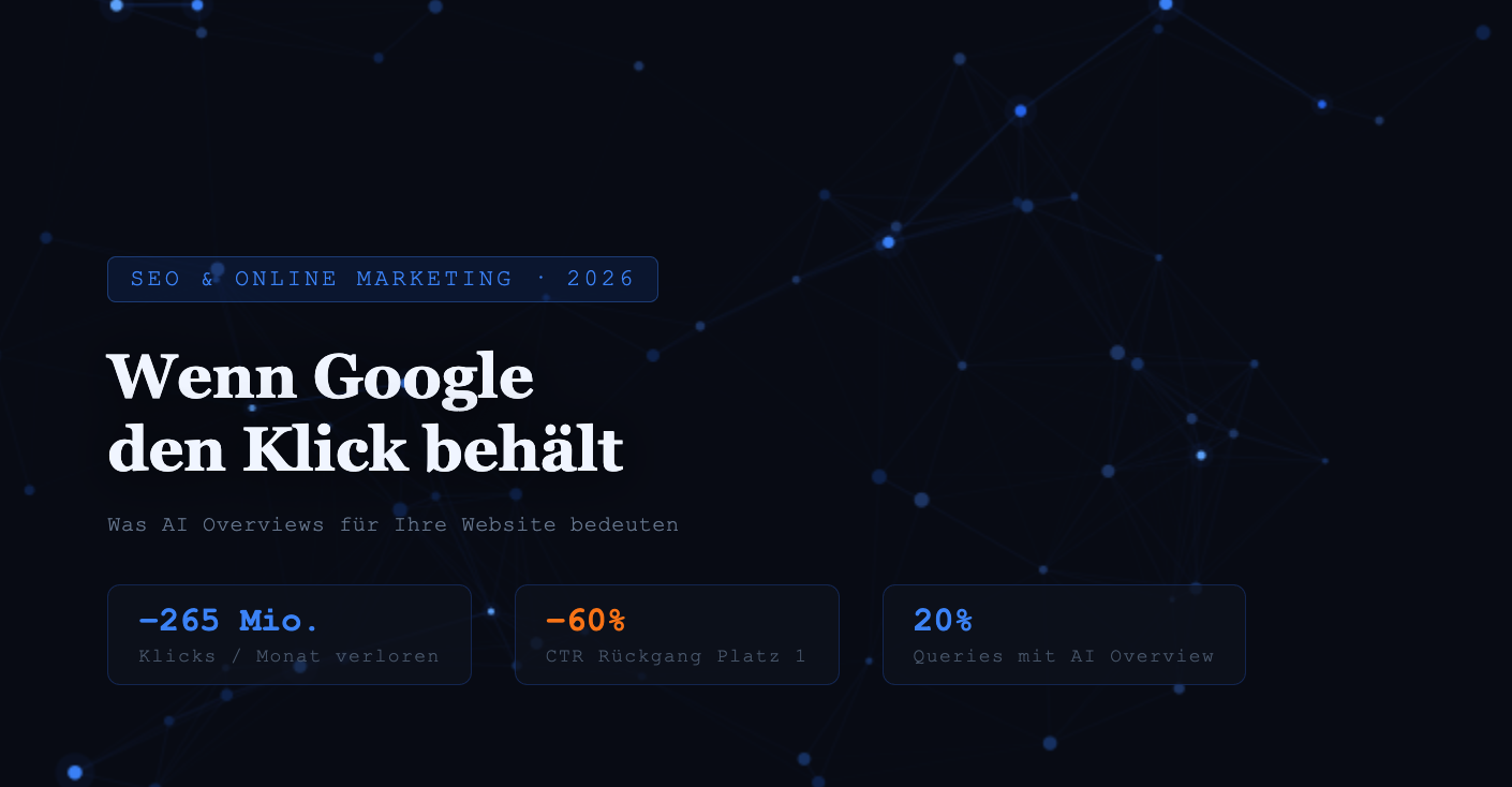 Google zeigt bei immer mehr Suchanfragen direkt auf der Ergebnisseite eine KI-generierte Zusammenfassung an. Der Nutzer bekommt seine Antwort — ohne auf eine einzige Website zu klicken. Laut einer Analyse des SEO-Tools Sistrix liegt der Anteil betroffener Suchanfragen in Deutschland bereits bei rund 20 Prozent.
